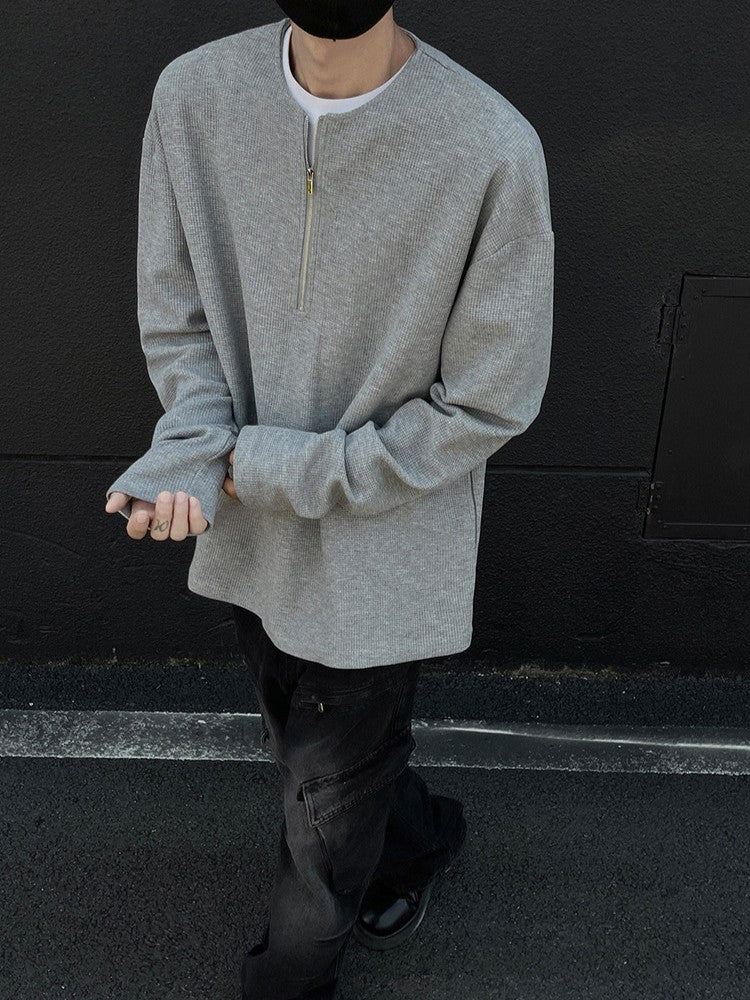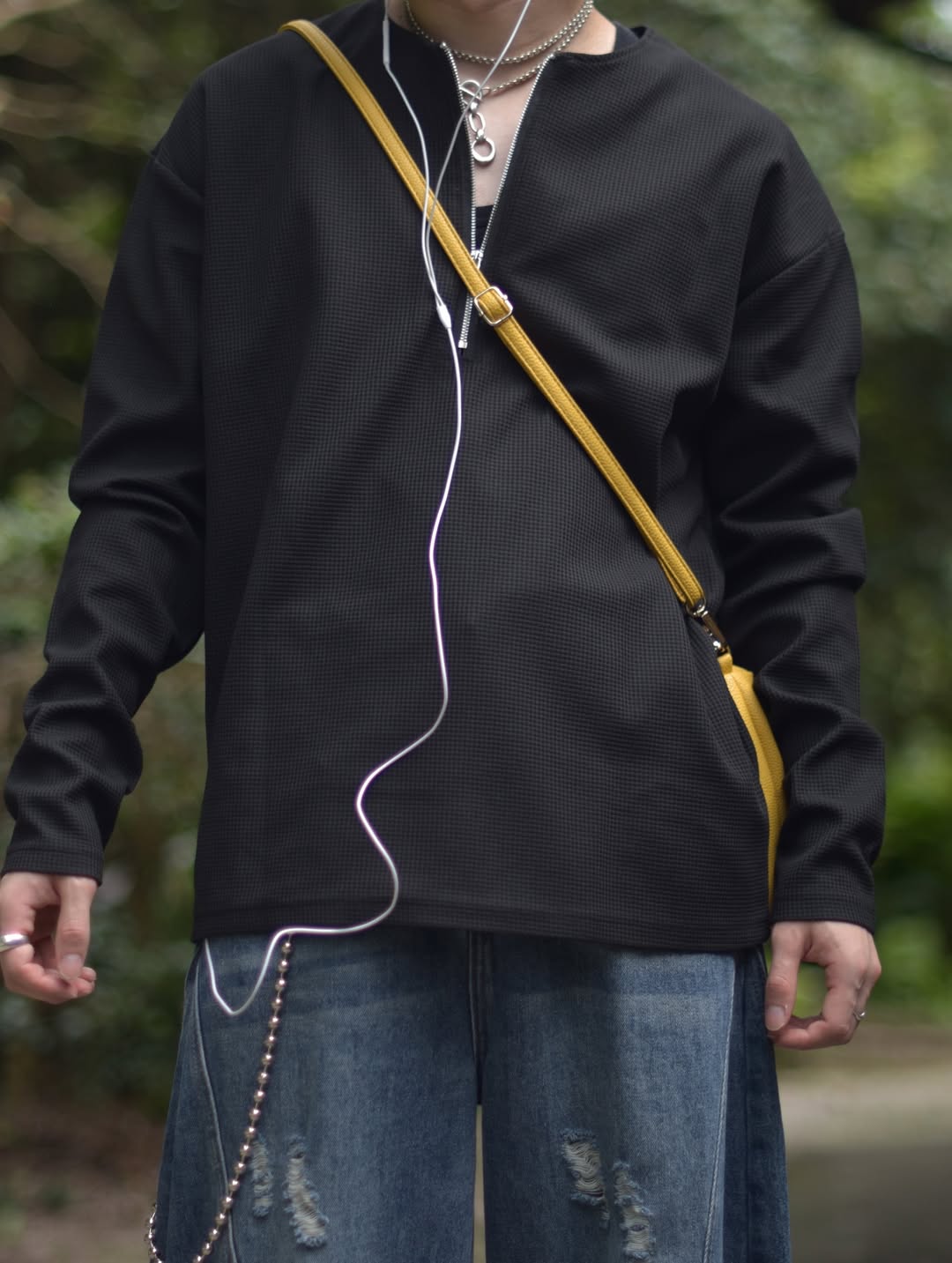 「kumagai」ワッフル編み ハーフジップ 長袖Tシャツ TK0052