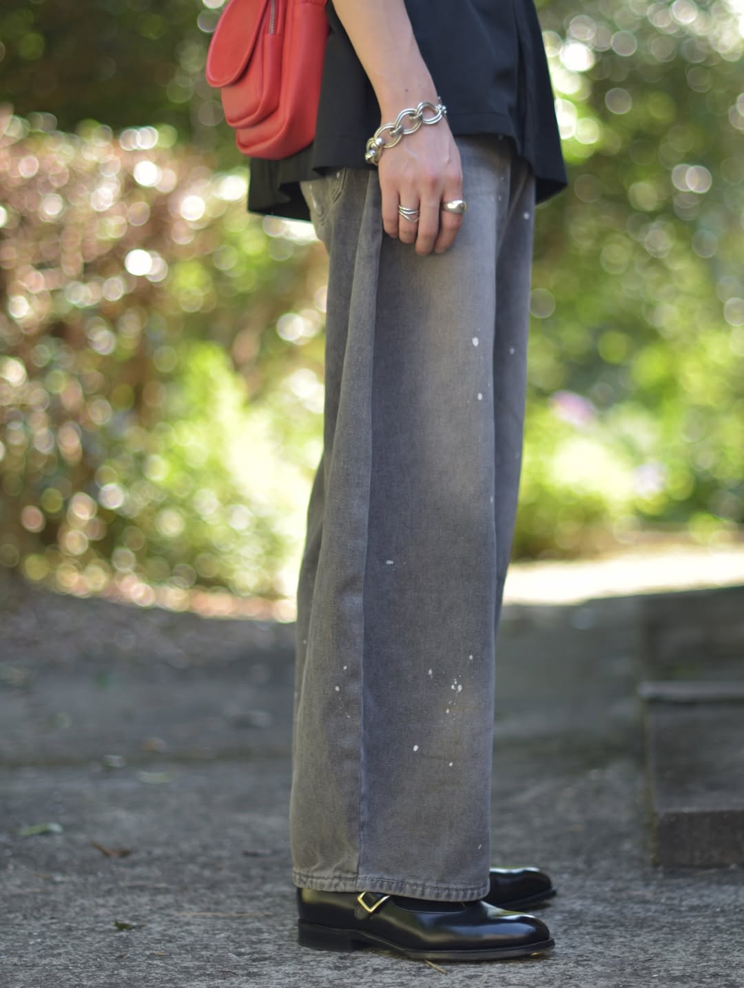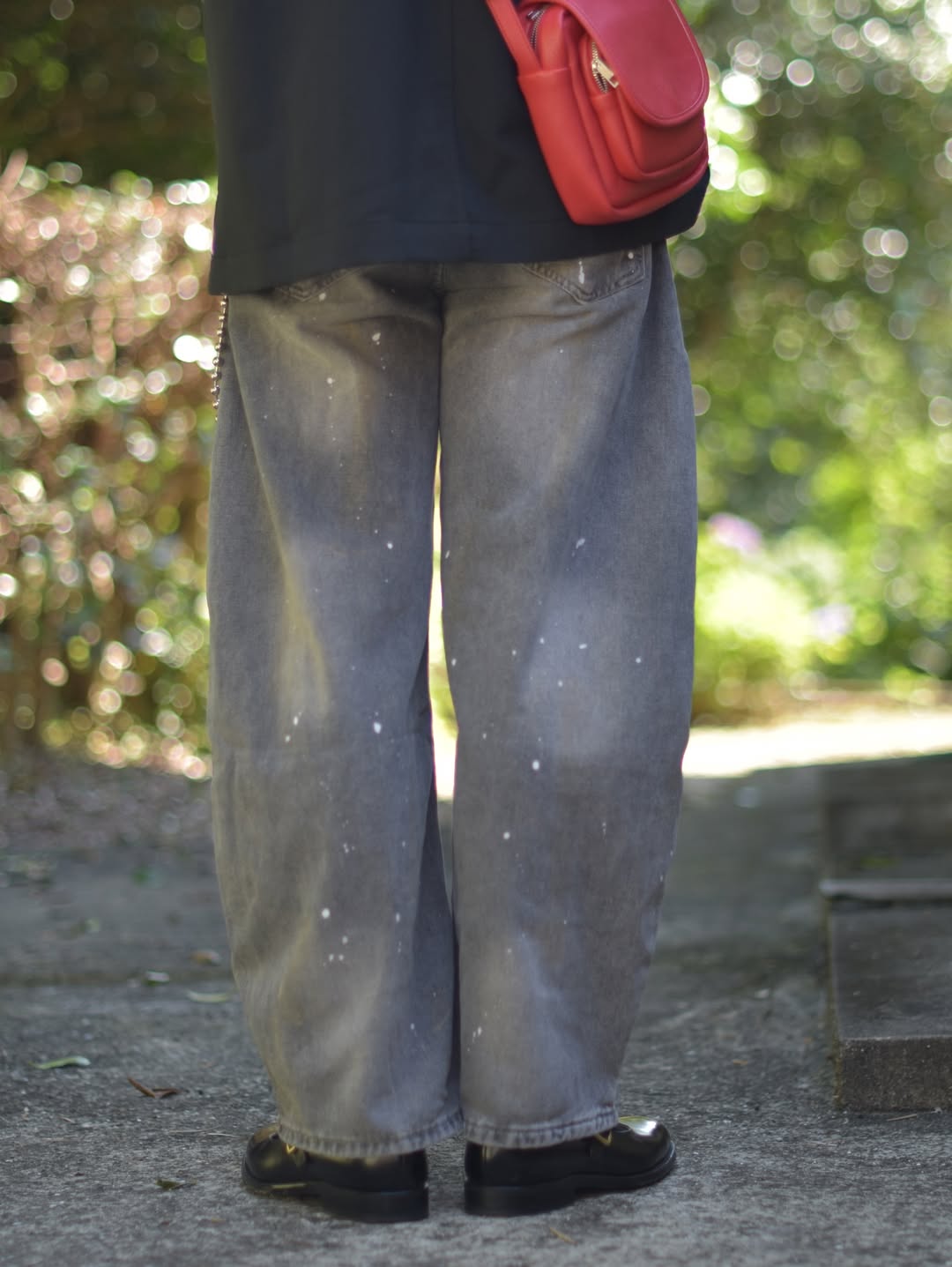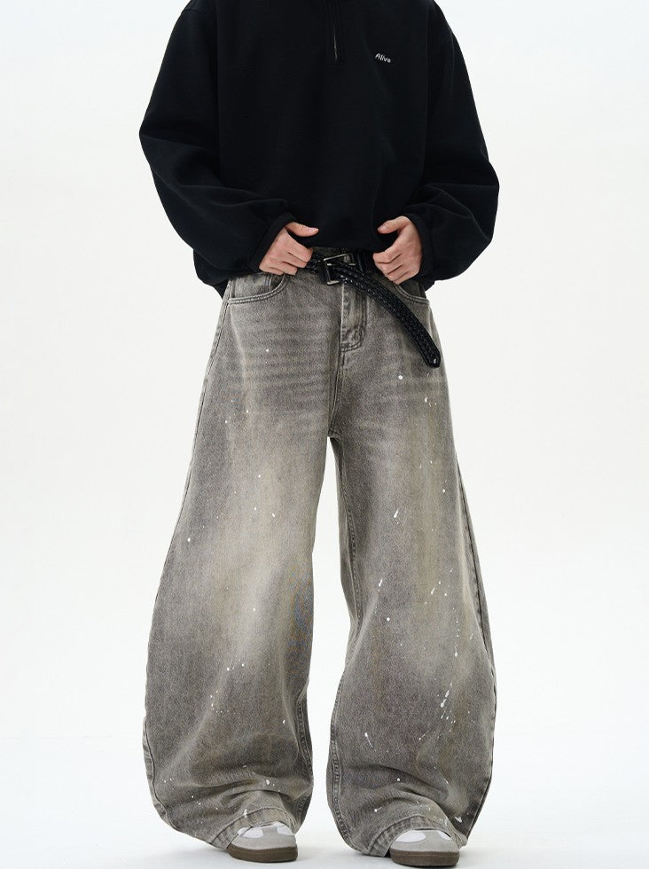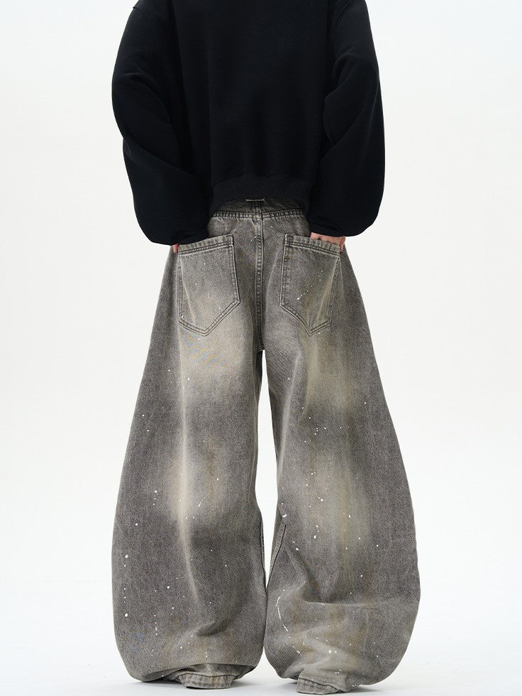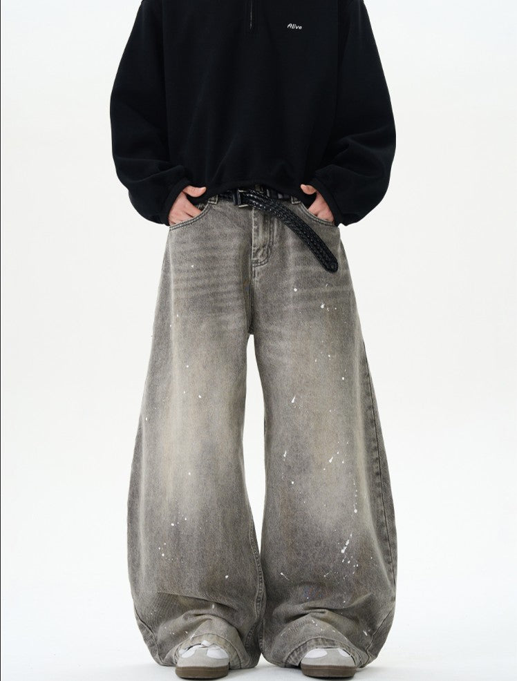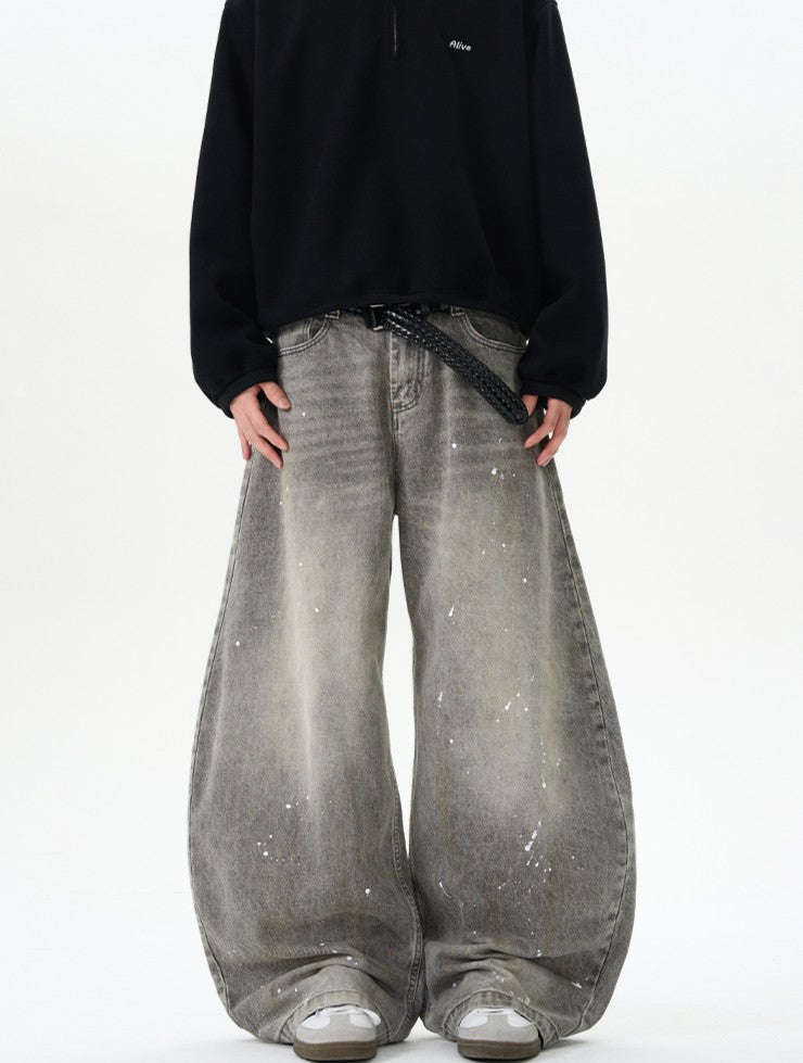 商品説明:ユニークなデザインと洗練された仕上がりが特徴です。水洗い加工を施したデニム生地に、アーティスティックなペイントデザインが施されています。特徴的な弯刀シルエットとワイドな裾が、ストリートスタイルを引き立て、個性的でスタイリッシュな印象を与えます。