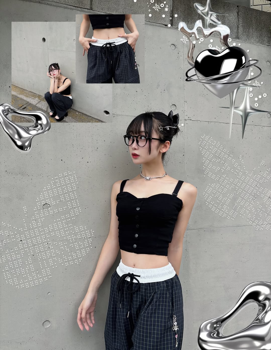 商品説明:カップ付きで美背デザインのブラックチューブトップ。伸縮性があり、韓系・アメリカンスタイルを楽しめる夏のセクシーアイテム。